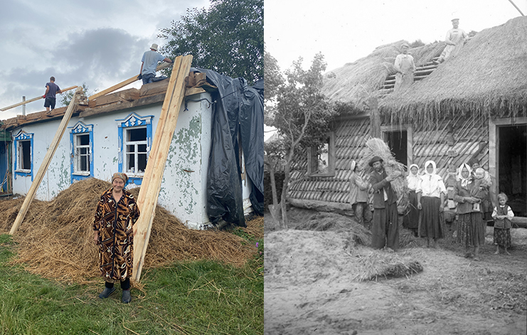 DAKH: Vernacular Hardcore juxtaposes the “heritage vernacular” of traditional Ukrainian village housing with the “emergency vernacular” of self-organised reconstruction work carried out under wartime conditions. We understand “hardcore” in its original sense as a (vernacular) builders’ word, which refers to the assorted bits of debris and clinker that are crunched together to form a building foundation. We appeal for an ethics—and politics—of rebuilding, which is rooted in the fragile, but unyielding, hardcore of the Ukrainian (and planetary) commons; and which makes manifest the structures of care, repair, solidarity—and resistance—that sustain it.